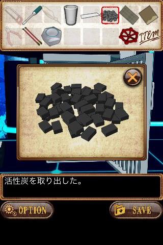 「活性炭の粉末」を入手して、「ケース」を調べる。