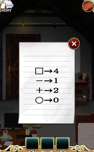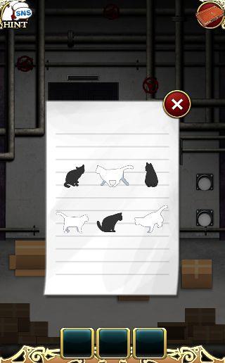 脱出!あにまる探偵[脱出ゲーム] 無料 0 評価する 送信する 第12話~第13話 第12話 誰か住んでます? 右の棚のメモを確認。 図形の直線の数を表している。 ソファーを動かして、「ダーツの矢」を入手。 「ダーツの矢」を的に当てると、装置が現れる。 装置の上の記号を数字に変換して、『4230』を入力する。 第13話 ジメジメにさよならを 真ん中のダンボールを動かす。 「カギ」を入手して、右の扉に使う。 メモを確認して、右下のボタンの色を合わせる。 本編攻略 第6話~第8話 第9話~第11話 第12話~第13話 第14話~第15話 第16話~第17話 第18話~第19話 第20話 第21話~第22話 第23話~第24話 第25話~第26話 第27話~第28話 第29話~第30話 第31話~第32話 第33話~第34話 第35話~第36話 第37話~第38話 第39話~第40話 シークレットアイテム 第1話~第10話 第11話~第20話 第21話~第30話 第31話~第40話
