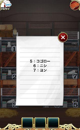 壁の点をヒントに、レバーを操作して、右下のメモを確認。