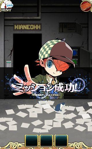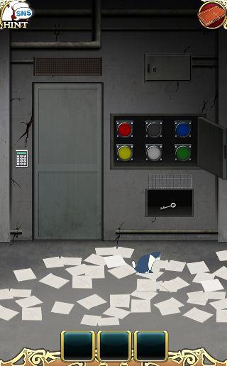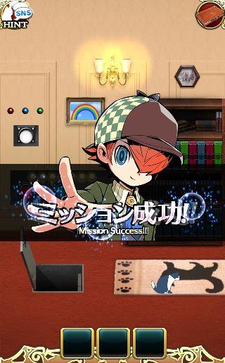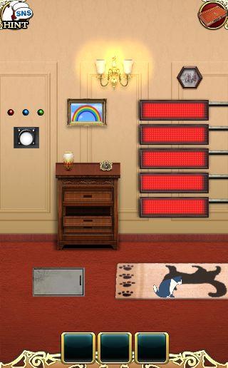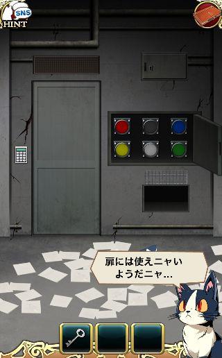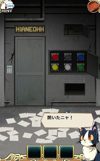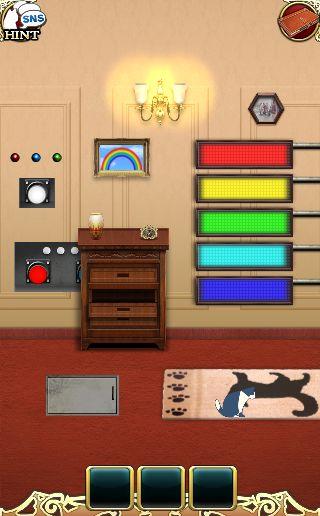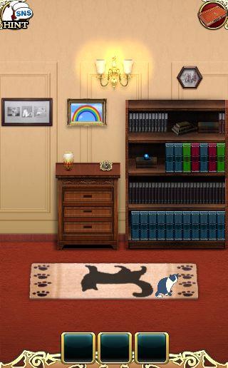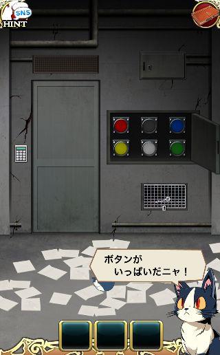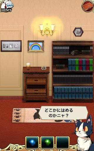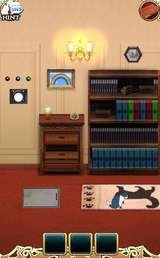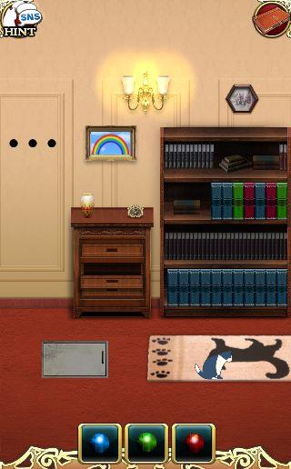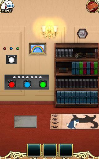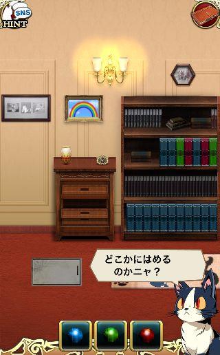 端末を左に傾けて、3色のボタンを本棚の本をヒントに押す。
