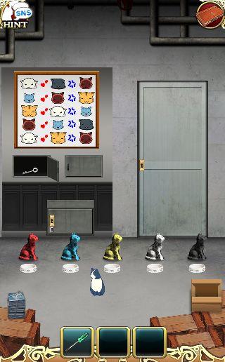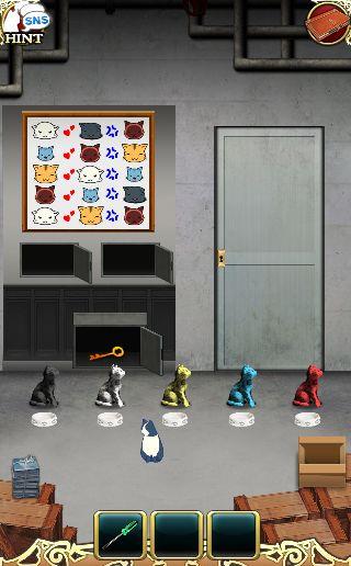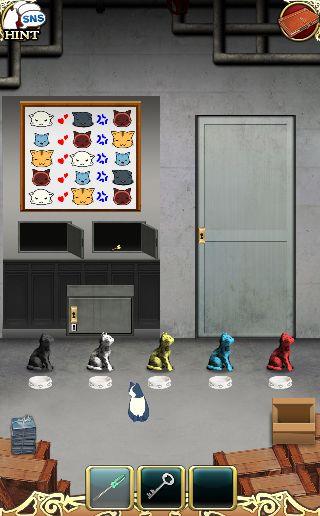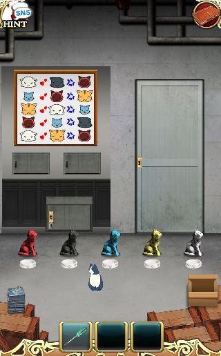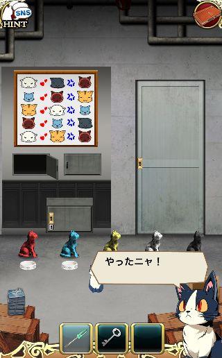 パネルを外して、壁の絵をヒントに好きな猫同士を隣に、嫌いな猫を遠ざけるように色を変える。