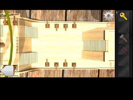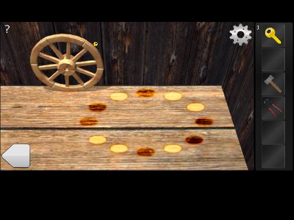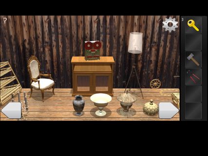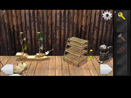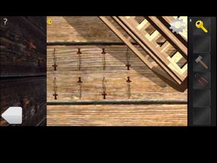 Room Escape - Attic 無料 0 評価する 送信する 攻略その2 左の電話機を調べて、ダイヤルの穴の場所を覚えておく。 右に移動して、テレビを調べる。 「回転ノコギリ」で切って、「ハンマー」を入手。 右に移動して、右下の操舵輪の前へ。 電話機のダイヤルの穴の場所をタップして、「カギ」を入手。 右に移動して、船の模型を拡大。 大砲の上下の向きを覚えておく。 右の棚の下の床を調べる。 船の模型の大砲の向きに合わせて、「カギ」を入手。 攻略その1 攻略その2 攻略その3