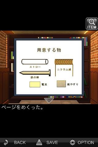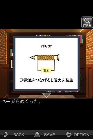 脱出ゲーム: 宝冠 無料 0 評価する 送信する IDAC CO.,LTD.(WaveA PTE.LTD.) 攻略その1 扉の前からスタート。 左の絵の下の暗号を確認。 右に移動。 左の棚の前へ。 赤い本を開く。 奥の本棚の前へ。 緑の本を開く。 電磁石の本を開く。 ページをめくって、作り方を確認。 右の棚の中央を拡大。 攻略その1 攻略その2 攻略その3 攻略その4 攻略その5 攻略その6 攻略その7 攻略その8