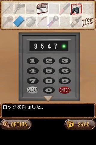 「VISITORカード」の裏をヒントに数字に変換すると、『9547』になる。