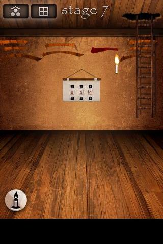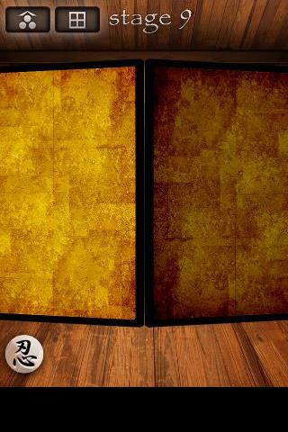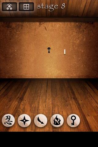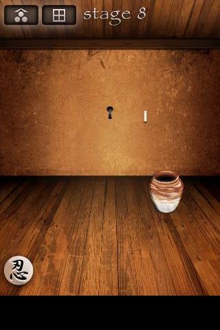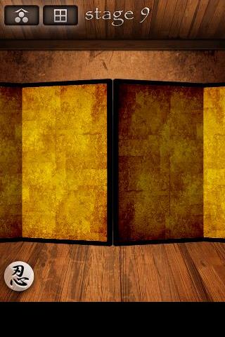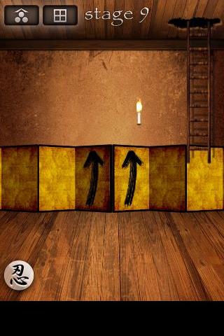 新感覚脱出ゲーム Ninja Escape 無料 0 評価する 送信する Stage 7~9 Stage 7 アイテムボックスから「炎」を選択する。 「炎」でロウソクに火をつけて、「ロウソク」を入手。 「ロウソク」で壁を照らすと、『三二-三』と書かれている。 これは『32-3』という式なので、装置を『029』に合わせる。 Stage 8 アイテムボックスから「手裏剣」を選択する。 「手裏剣」で壺を壊して、「カギ」を入手。 「カギ」を鍵穴に使う。 Stage 9 屏風を左右にフリックして動かしていく。 最後に矢印が現れたら、下から上にスワイプする。 Stage 1~6 Stage 7~9 Stage 10~14 Stage 15~19 Stage 20~23 Stage 24~28 Stage 29~33 Stage 34~39 Stage 40~44 Stage 45~50