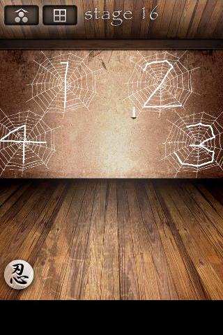 アイテムボックスから「手裏剣」を選択して、クモの巣の数字のとおりに『左から2番目、3番目、4番目、1番目』のクモを「手裏剣」で倒していく。