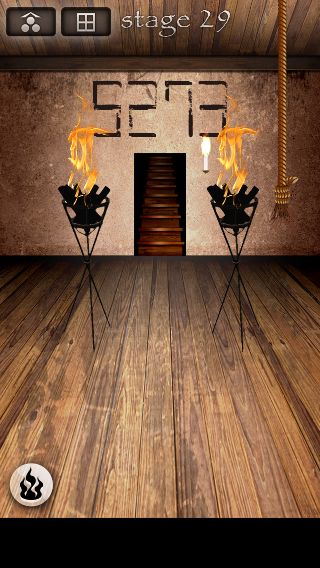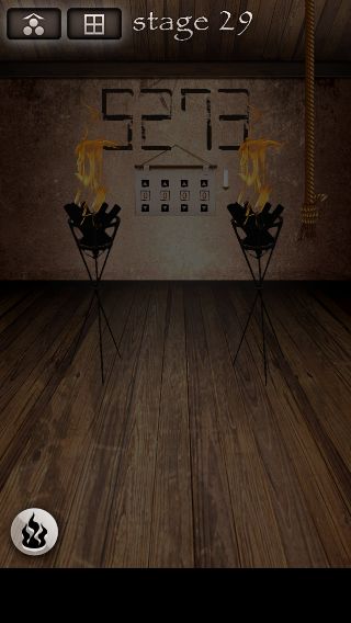 「炎」で2ヶ所に火をつけて、右のロープを引っ張る。