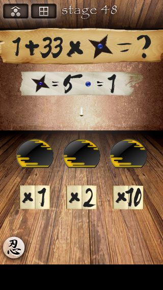 解説:『手裏剣=5』なので、上の式は『1+(33×5)=166』になる。