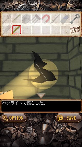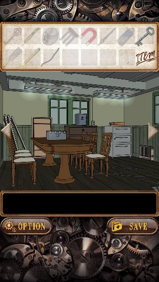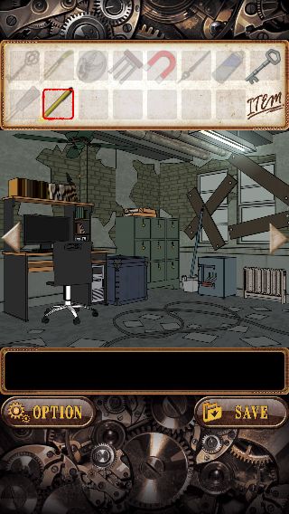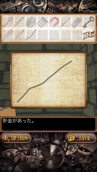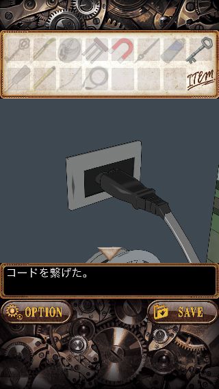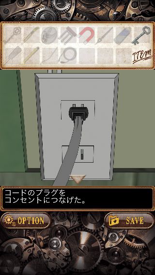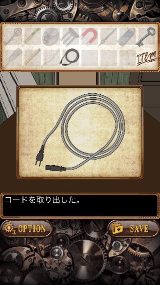 テーブルの上の箱を拡大して、「針金」を使って「コード」を入手。
