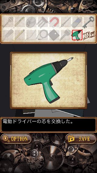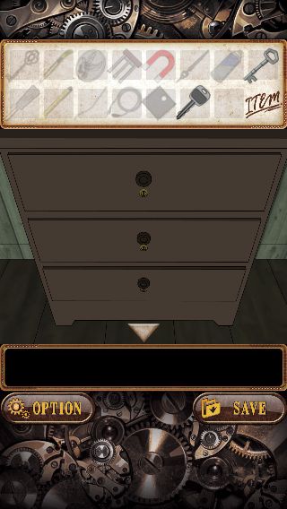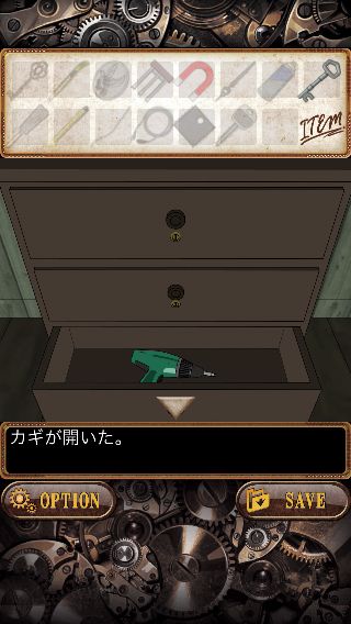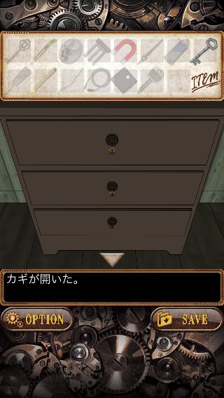 中央の棚を拡大して、一番下の引き出しに「小さなカギ」を使う。