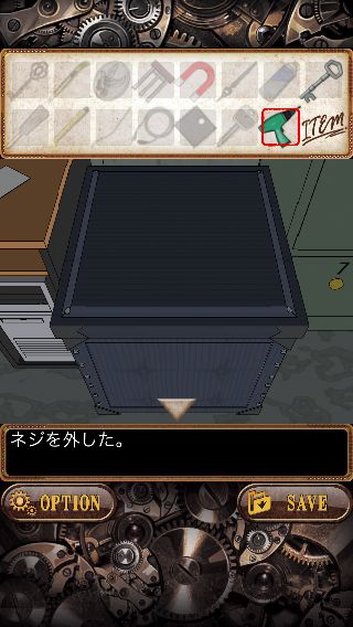 前の部屋に戻り、右に移動して中央の箱を拡大。