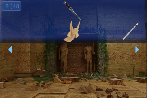 Escape 3D: The Pyramid 無料 0 評価する 送信する 攻略その3 スタート地点に戻る。 「石像の頭」を中央右側の石像に取り付ける。 右に移動して、中央の壁に描かれている壁画を確認。所持品から「刷毛」を選択する。 「刷毛」を中央下の砂の山に使い、「石版」を入手。 左に戻り、石像を先ほどの壁画と同じ向きに合わせる。 刷毛を拾った奥の部屋へ行くと、壁に先ほどは無かった壁画が現れる。 「石版」を壁にはめる。 壁を調べ、頭の部分にある3つのヒエログリフを上から順番に左右から探しだしてタップする。 画面を引くと出口が出現して脱出。 攻略その1 攻略その2 攻略その3