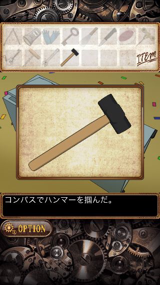 扉を少し開けて、「コンパス」を使って「ハンマー」を入手。