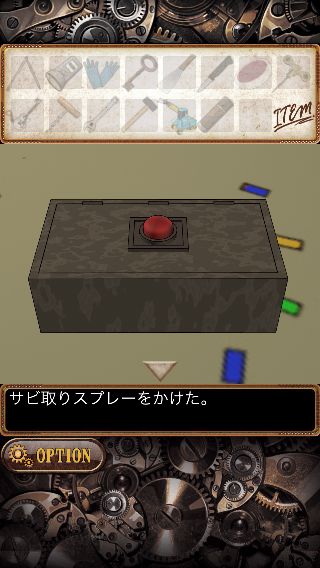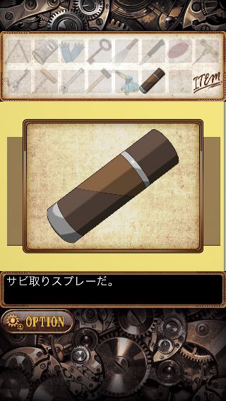「ハンマー」で穴を開けて、「サビ取りスプレー」を入手。