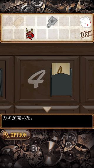 『4』の扉を拡大して、「木製のカギ」を使う。