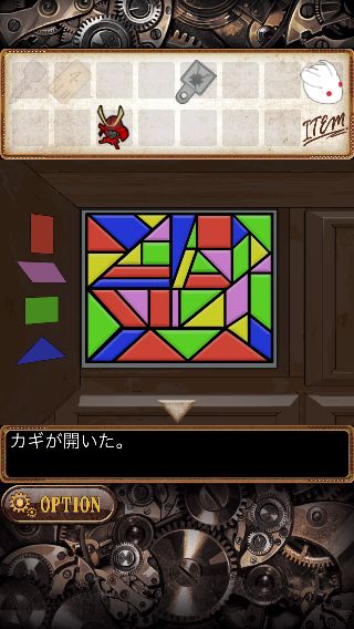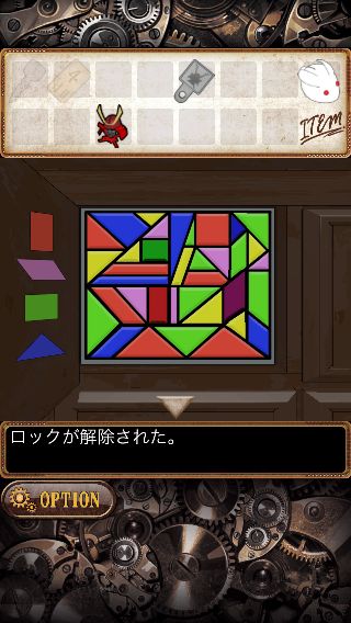 扉を開けて、左の4つの図形と同じ図形を押す。