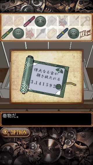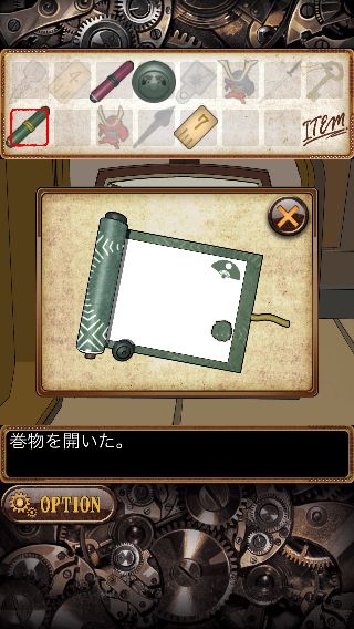 「緑の巻物」を開いて、「金具」を入手。