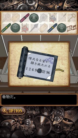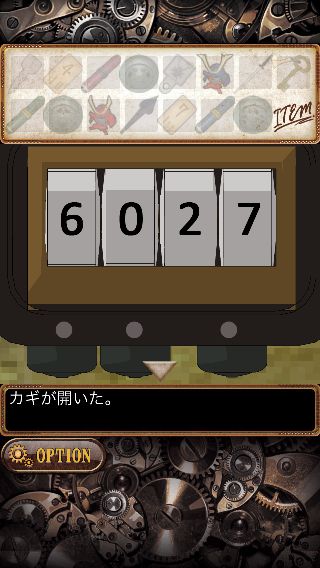 はめた「金具」に対応した「巻物」の、穴の開いた部分の数字を並べて『6027』を入力する。