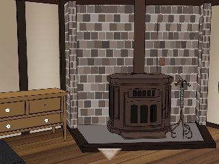 右奥のストーブの前へ。