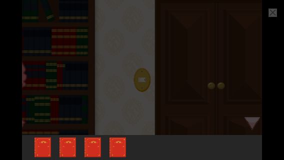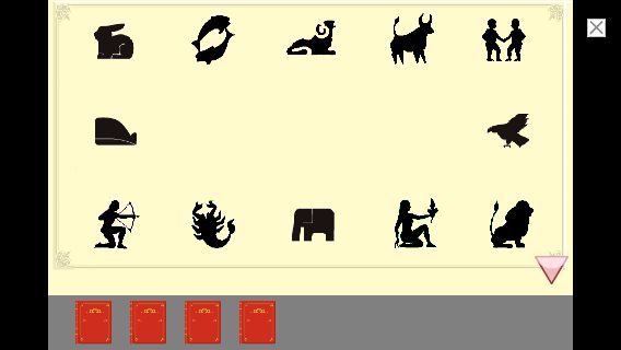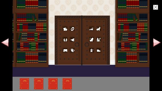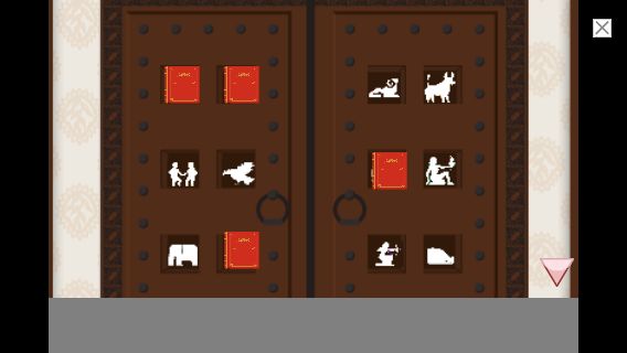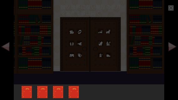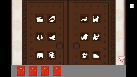 扉に『ウサギ、魚、ライオン、サソリ』の位置に4冊の「本」をはめる。(電気は消えたままでもOK)