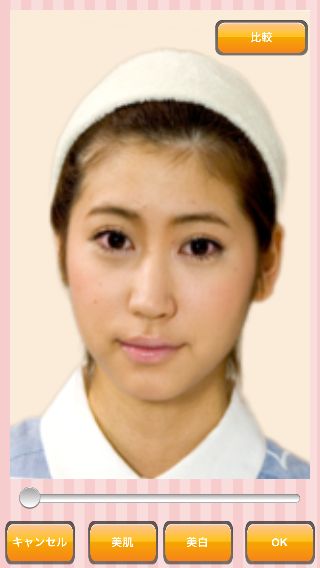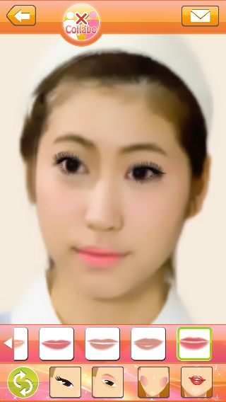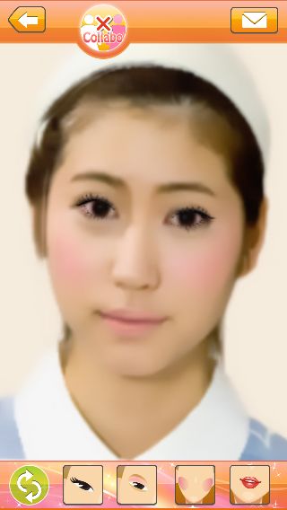 画面上のアイコンをタップすれば、おぐねーさんによる正統派メイクを自動で作成してくれる。