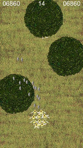 ミツバチが主人公の縦スクロールシューティングゲーム。