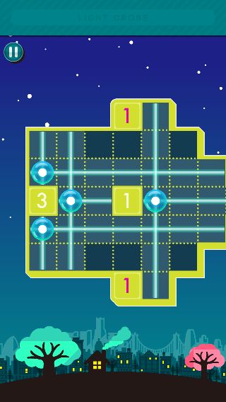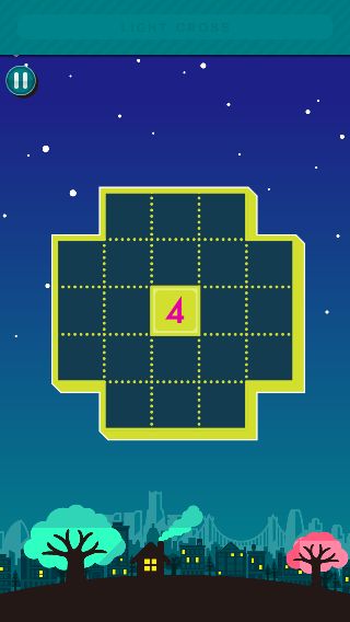 ステージ上のマスをタップすると、4方に光線が伸びる「電球」を配置する事ができる。