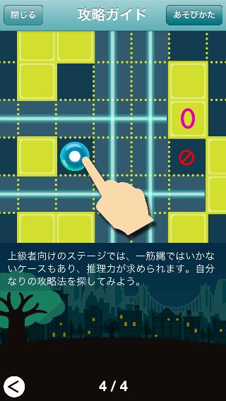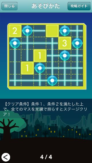 この2つのルールに従って、全てのマスを光で照らせばステージクリアとなる。