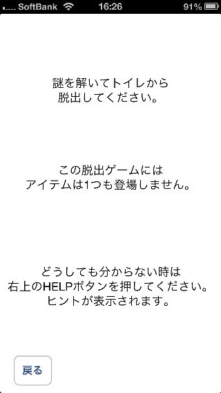 脱出ゲームTOIRE 無料 0 評価する 送信する 実写を使用した、トイレからの脱出ゲーム。 アイテムは1つも登場せず、その分謎解きに重点を置かれている。 ※ 公開停止 ルールは閉じ込められたトイレから、謎を解いて脱出する事。 アップデートでヒント機能が追加され、元々高かった難易度は緩和されている。 ゲームの舞台となるのはトイレの個室のみ。 移動は左右の矢印ボタンで行う。 脱出までの完全攻略を掲載しているので、ネタバレ注意! 脱出までの完全攻略