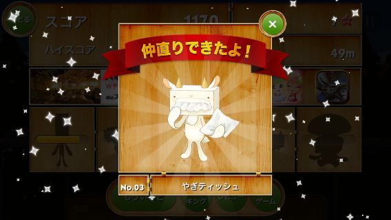 ゲージがいっぱいになると、仲間と仲直り!シルエットをタップすると開放条件が分かるので、全ての仲間と仲直りしよう!