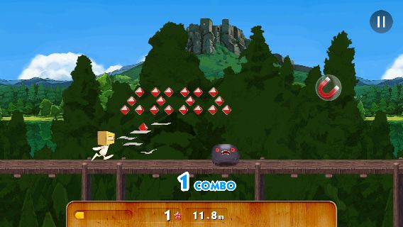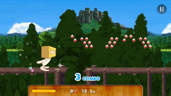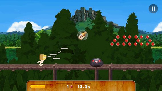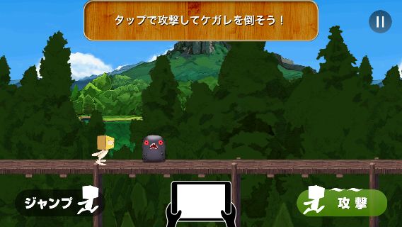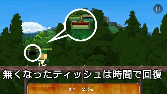 ステージは強制スクロールで、画面の左側をタップすると「ティッシュン」がジャンプする。