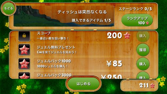 ステージ上のジュエルのカケラを集めて、ショップでパワーアップアイテムを購入しよう。