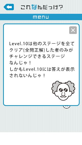 最終レベル10をプレイするには、レベル1~9全てで全問正解する必要がある。