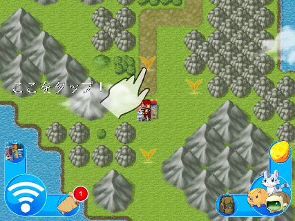 フィールドの移動は画面のマークをタップするだけ。