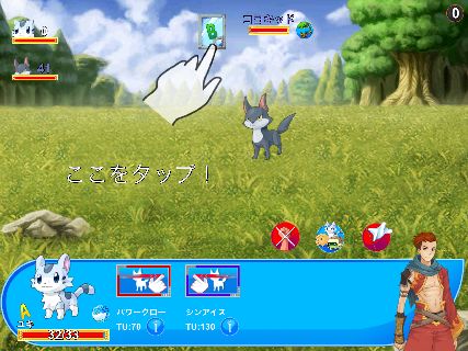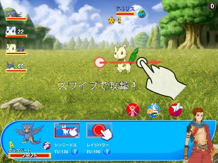 操作は画面下のスキルをタップするか、敵を直接フリックする事で行う。