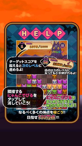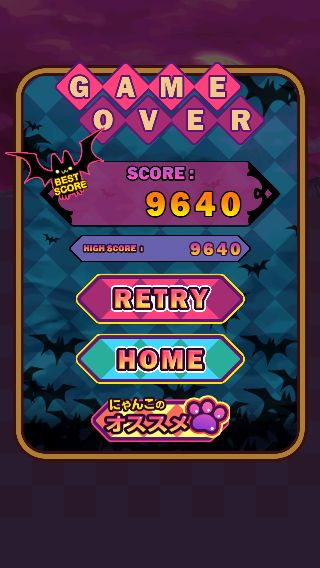 消した「にゃんこでびる」は復活せず、各ステージのターゲットスコアを超えるとステージクリアとなる。