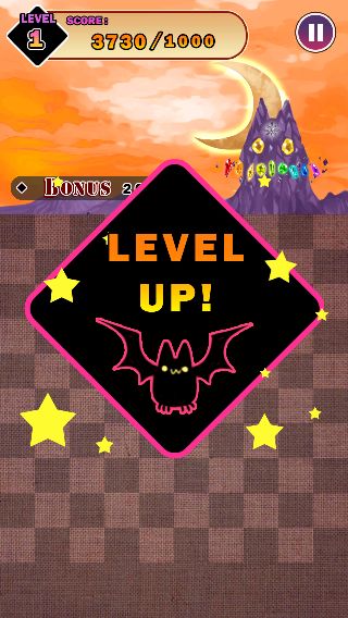 ステージクリア後に全ての「にゃんこでびる」を消すか、消せなくなってしまうとレベルが上がって次のステージに進む。