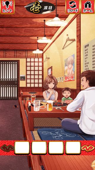 焼肉屋が舞台のステージクリア型の脱出ゲーム。全10ステージが用意されている。
