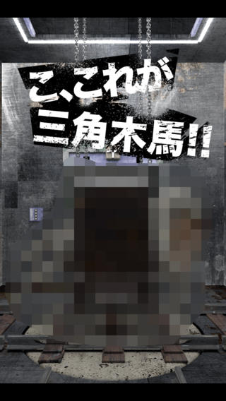 脱出ゲーム「三角木馬」 無料 0 評価する 送信する 回転ベッドに続く第2弾は三角木馬! レールの敷かれた荒廃とした部屋の謎を解いて、三角木馬に乗って脱出しよう! ※ 公開停止 スタートすると、オープニング。 荒廃とした不思議な部屋に閉じ込められてしまった。 移動は左右にスワイプ操作で行う。 気になる部分をタップで調べて、手がかりを探していこう。 条件を満たすと現れる「三角木馬」。 謎を解いて乗る事ができるか!? 攻略その1 攻略その2 攻略その3 攻略その4 攻略その5
