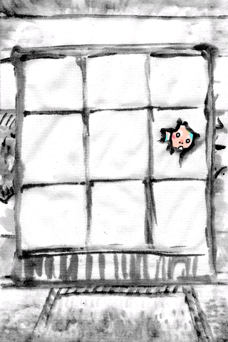 9マスに分かれた障子に穴を開けていく。9分の8で継続、9分の1ではずれという単純明快なルール。