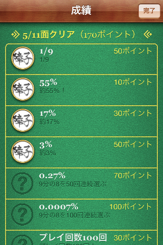 もちろん「Game Center」完全対応。アチーブメントは少々厳しめのものもあり、まさに運次第。