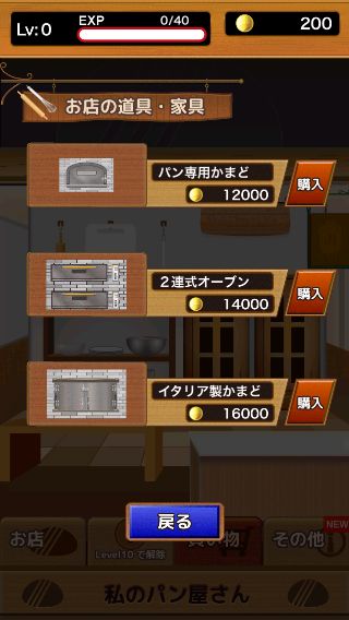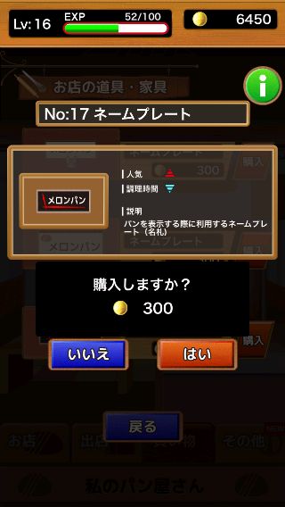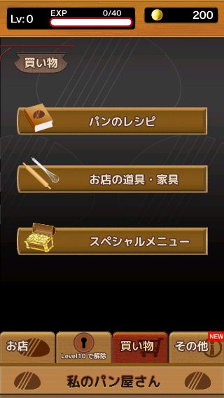 お金が貯まってきたら、ショップで新しいパンのレシピや道具を購入する事ができる。