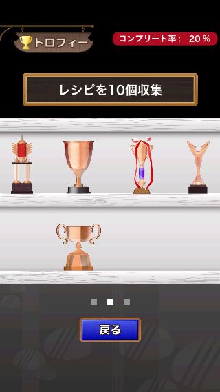 一定条件を満たすと獲得できるトロフィーや、レシピの収集率などやりこみ要素も満載!