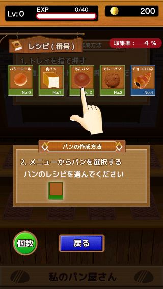 作るパンを選んで、あとは待つだけのお手軽放置系のシミュレーションゲーム。