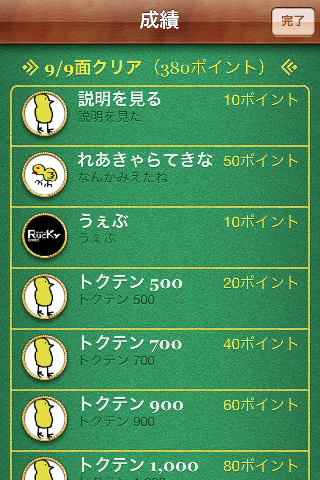 iPhone版は「Game Center」完全対応。アチーブメント最大の難関は「トクテン1,200」だが、絶妙なゲームバランスで何度もプレイしていくうちにきっと取れるはず。