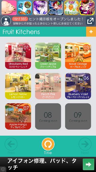 部屋に仕掛けられた謎を解いて、7つのフルーツを集めていくステージクリア型の脱出ゲーム。