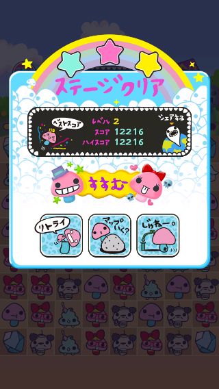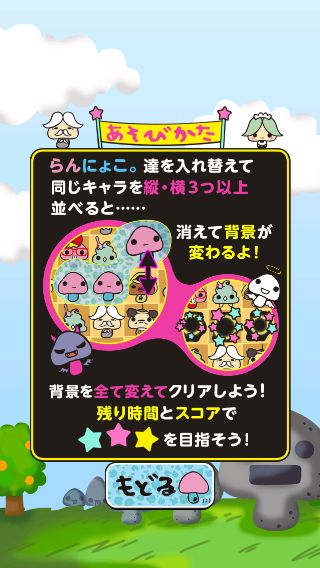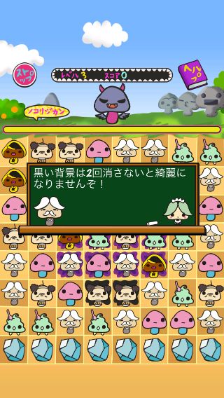 先のステージに進むと、2回消さないと綺麗にならない黒背景など難易度も上がっていくので、らんにょこ。達の消し方も考えながらスペシャルアイテムをうまく活用しよう。