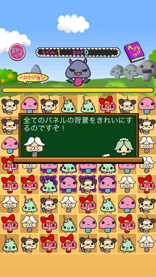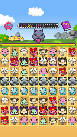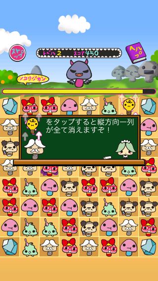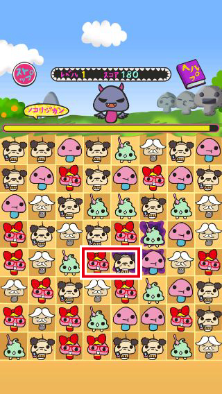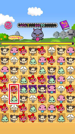 まとめて消す事で出現するパンツを被ったらんにょこ。は、タップするとランダムで1種類のキャラ全てを消す事ができる。