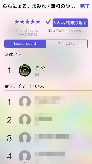 iPhone版はGameCenterのリーダーボードに対応していて、ステージクリア時の評価でもらえる☆の数を競う事ができる。