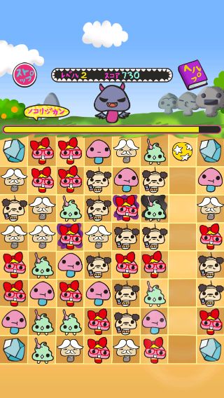 基本操作は、タテ・ヨコ隣り合ったキャラを入れ替えて、3つ以上同じキャラを揃えて消していくオーソドックスなマッチ3タイプ。